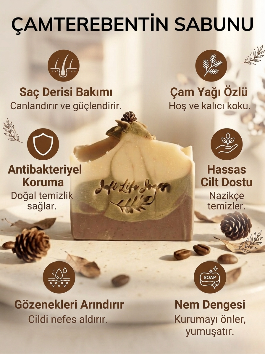 Safi Life Notu: Doğanın dirençli ağacı çamın özünü taşıyan bu sabun, saçlarınıza güç, cildinize ise taze bir nefes aldıracak. Safi Life ile doğallık her zaman yanınızda.